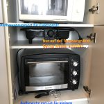 Seit kurzem steht auch ein transportabler Backofen zur Verfügung, den Sie aus Sicherheitsgründen am Besten rechts neben der Spüle aufbauen. Unsere Pizza war tatsächlich in der angegebenen Backzeit fertig.